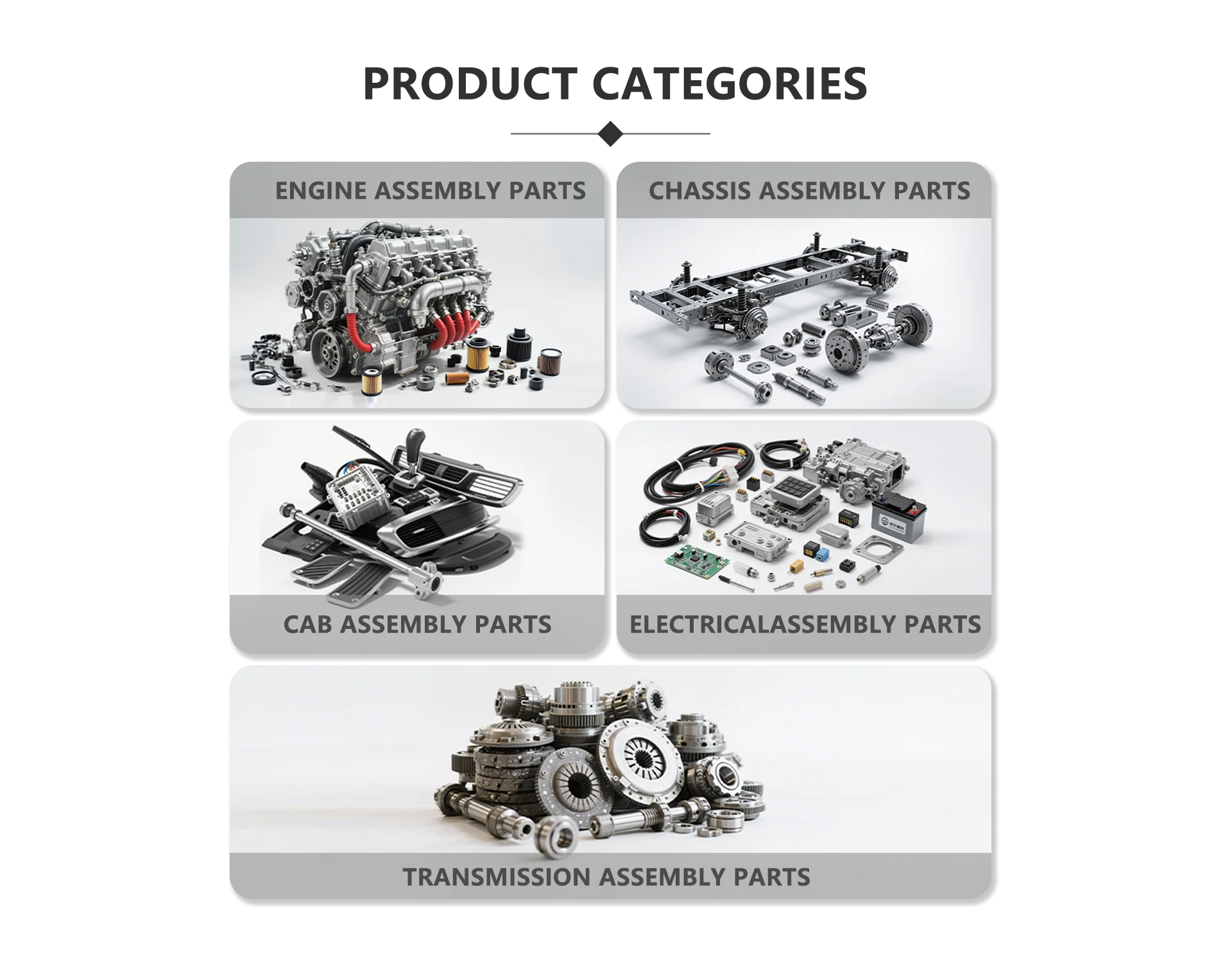 Principais produtos:Peças de veículos comerciais, peças de veículos de mineração, produção de peças personalizadas, vendas de carros usados